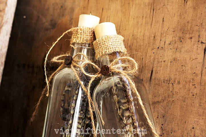 - Chất liệu: chai thủy tinh, hoa lavender khô, dây thừng, nút gỗ.