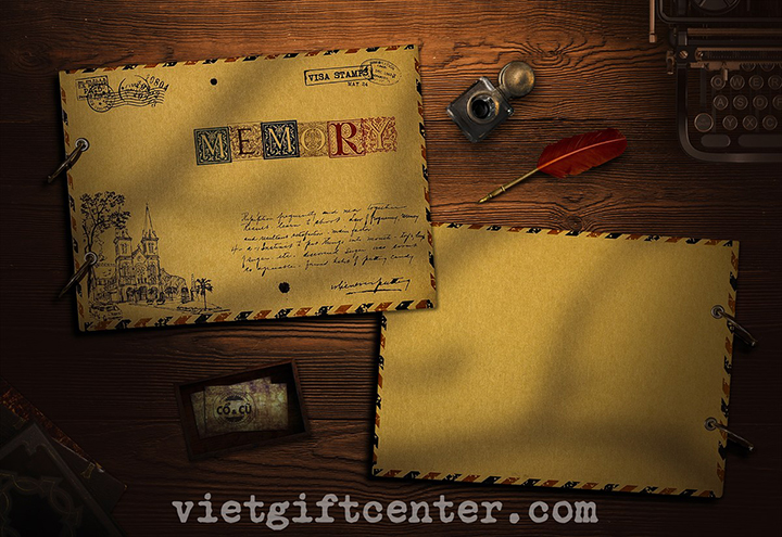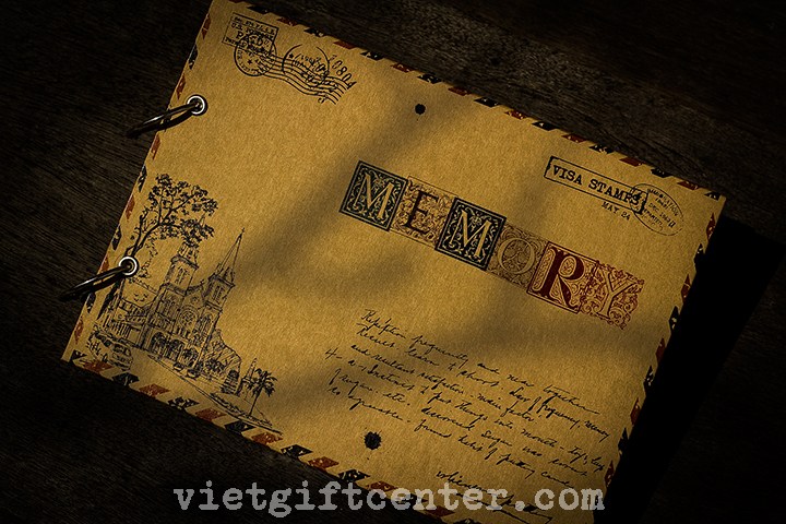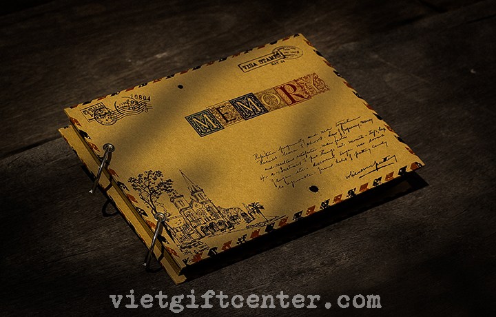 Album Memories được thiết kế theo phong cách bì thư Vintage cổ điển bên ngoài, bên trong là mẫu giấy cứng cáp với màu nâu phong cách bì thư đơn giản.