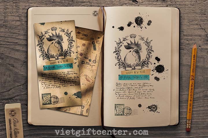 Thiết kế bao lì xì phong cách Vintage cổ điển cùng ý tưởng chú gà trống oai vệ, sản phẩm là niềm chúc đầu năm mới đầy may mắn cho khách hàng nhân dịp đầu xuân.