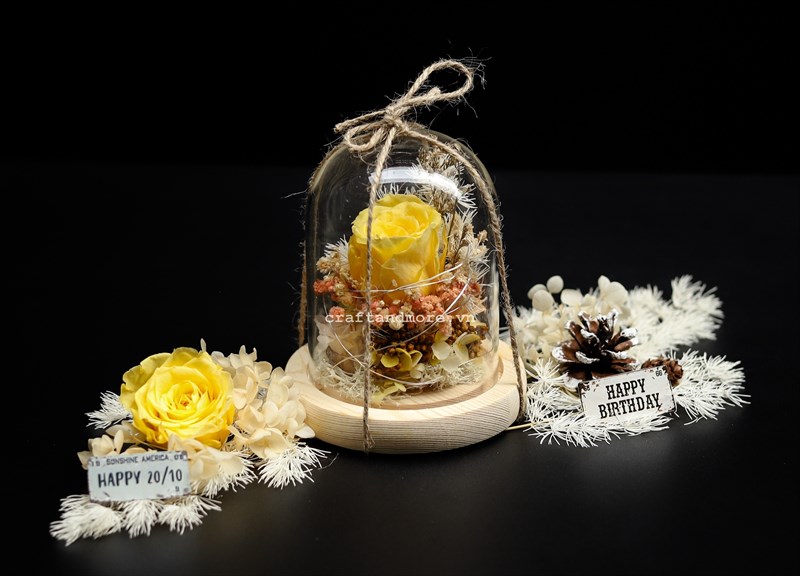 Bình thủy tinh, đế gỗ có thể cá nhân hóa thông điệp câu chúc, lời nhắn làm quà tặng sinh nhật; 8/3; 20/10, 20/11.