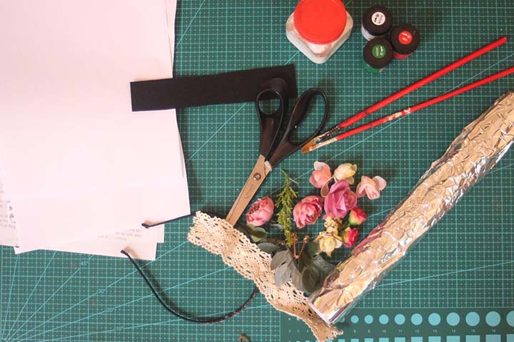 - Thước, kim chỉ cỡ lớn, kẹp giấy, kéo.