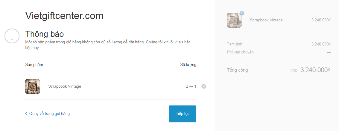 Bước 3: Kiểm tra lại sản phẩm trong giỏ hàng và nhấn tiếp tục