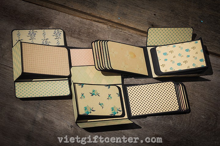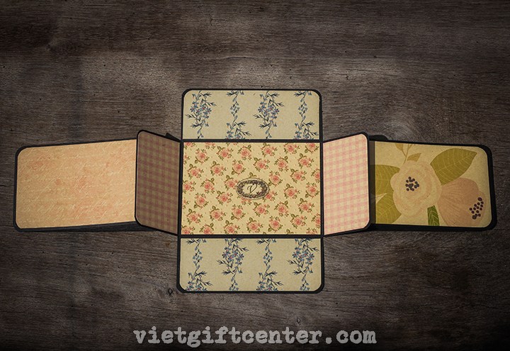 Tưởng là chiếc hộp giấy hoa văn nhiều màu sắc chìm nổi, nhưng mở ra mới thực sự là sự ngỡ ngàng, bao cảm xúc vỡ òa trước mắt - đó cũng chính là điều bất ngờ bạn có thể dành tặng cho người yêu, bạn bè hay người thân của mình với sản phẩm box album handmade theo phong cách Vintage này!