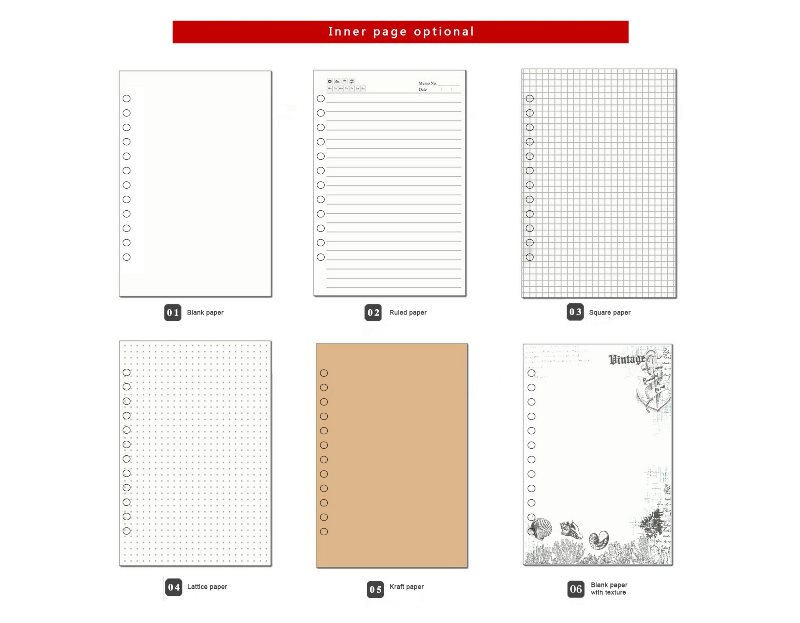 Bạn chọn ruột sổ in như thế nào: trắng trơn, ô vuông, chấm, dòng kẻ, kraft nâu trơn vintage, họa tiết vintage góc
