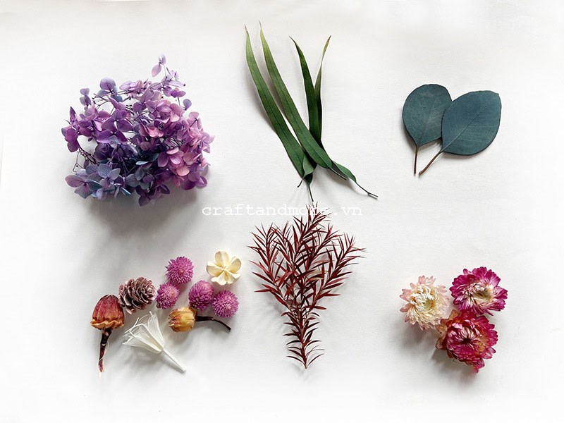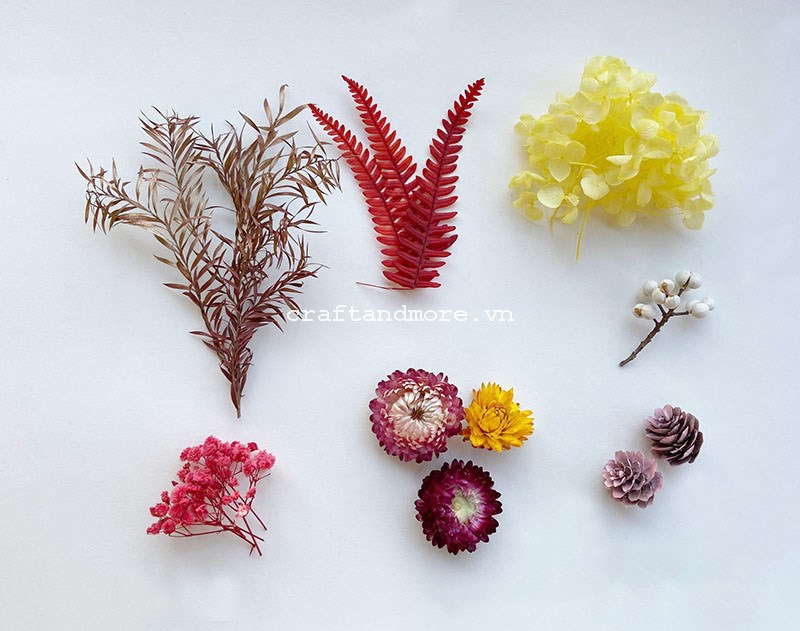 Hoa tự nhiên sấy khô có nét đẹp rất riêng rất được yêu thích sử dụng làm các sản phẩm handmade như thiệp, khung tranh, scrapbook, sổ...