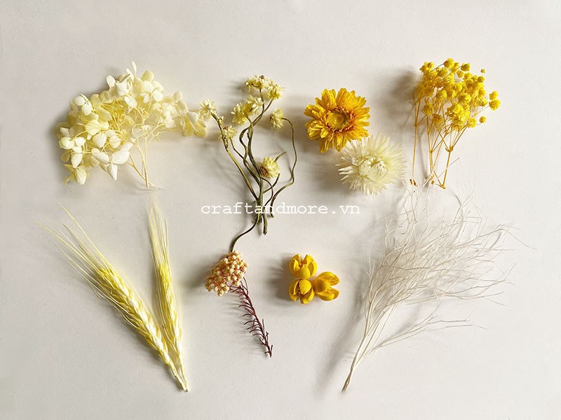 Hoa khô được sắp xếp chọn lựa sẵn theo tông màu đẹp nhất thống nhất từng chủ đề cho bạn thoải mái chọn lựa làm handmade thủ công thỏa thích.