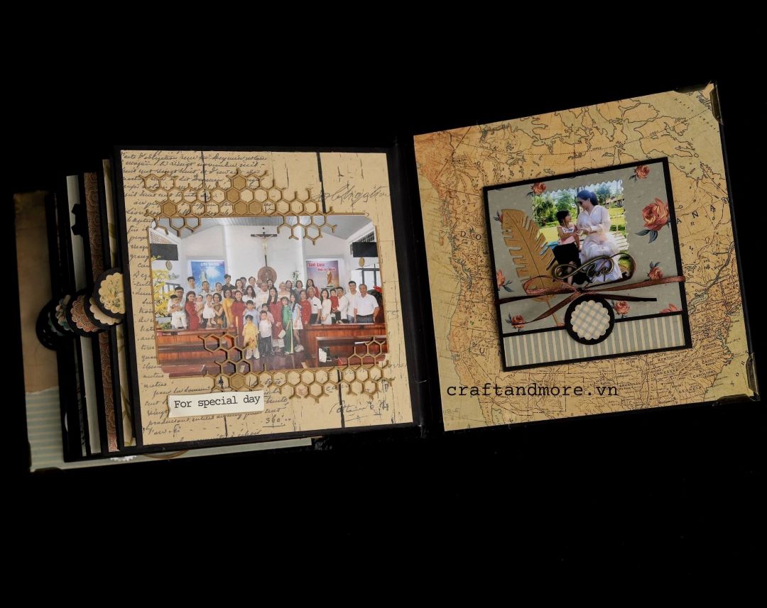 Đây là sản phẩm được yêu thích nhất tại Craft & More Vietnam vì sự độc đáo, ý nghĩa của món quà. Chính bạn là người hoàn thành làm quyển album ảnh handmade này với thời gian, tâm huyết và tình cảm đặt vào từng trang layer với các bức hình giấy lưu giữ kỉ niệm và kể lại câu chuyện của mẹ, con, của gia đình.