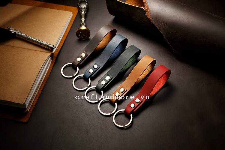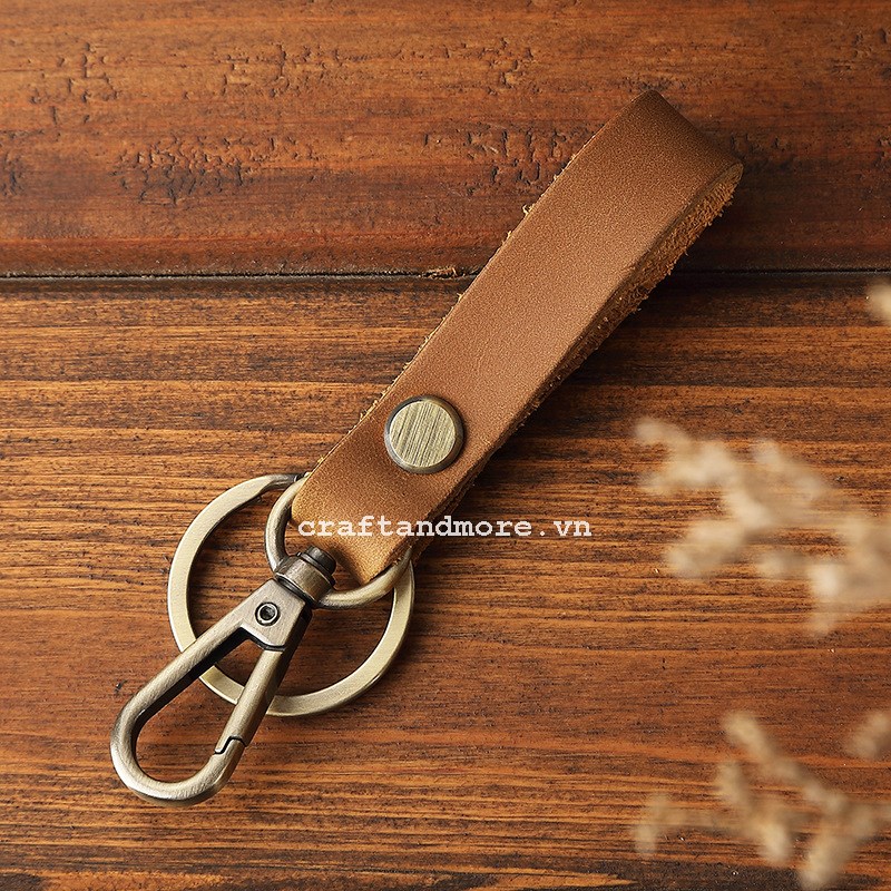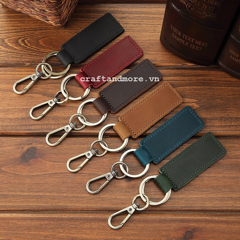 Móc khóa có phần dây da được khắc tên theo yêu cầu. Kích thước: móc dài 9-11cm chưa bao gồm chìa khóa.