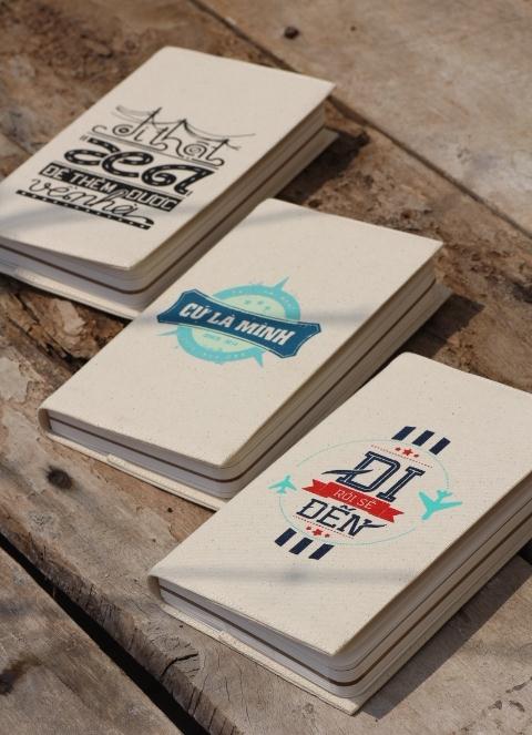 Sổ tay bìa vải Canvas được gắn với những slogan trẻ trung