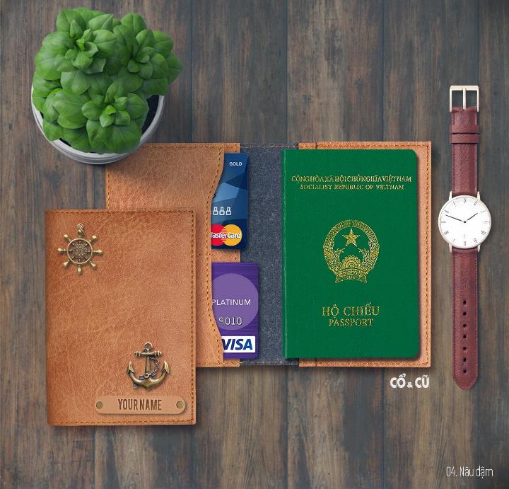 Ví passport covers màu nâu không bao giờ lỗi mốt. Khắc tên riêng, gắn charm trang trí theo ý thích MIỄN PHÍ.