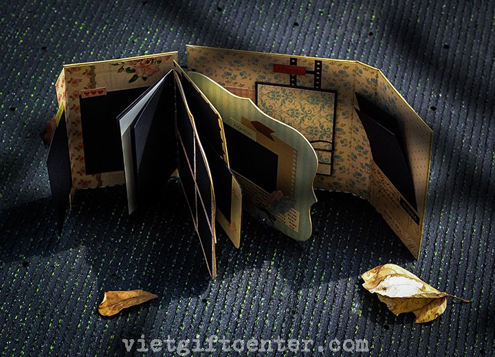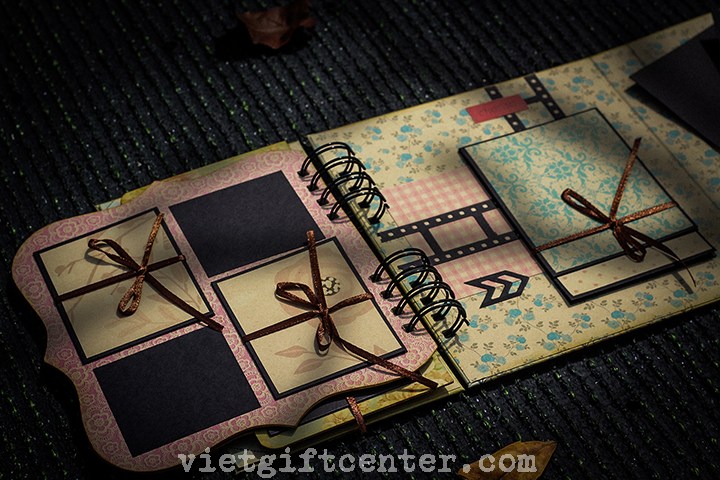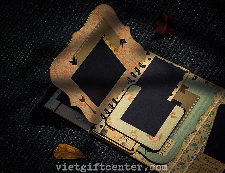 Mẫu scrapbook mới lạ với thiết kế tuyệt vời, sắp xếp khéo léo thành cuốn album ảnh đậm chất retro;