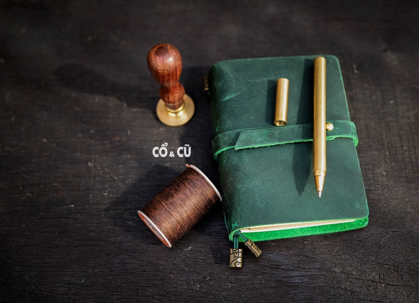 Bìa sổ được làm bằng da bò thật bền vô đối có độ dày chuẩn từ 1.8mm đến 2.2mm; da được tuyển chọn kĩ càng chỉ với 2 mẫu da là DA SÁP và DA VEG. Bìa được cài chắc chắn theo 2 kiểu cài dây da hoặc dây thun. Bìa được khắc tên cá nhân hóa độc đáo cùng với phù điêu trang trí tạo nên nét đẹp hoài cổ - retro đầy cá tính. Tất cả các chọn lựa này đều có thể lấy hoặc bỏ tùy ý thích của khách hàng.