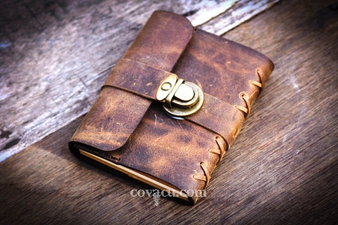 Sổ tay da bò có cài kim loại chắc chắn. Sổ da có đan gáy tăng thêm chất cá tính, vintage. Bạn có thể yêu cầu không đan gáy cho sổ da nếu bạn không thích!