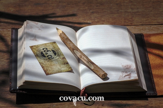 Sổ được may tay (handmade), khắc lazer tên, logo theo ý riêng. Kích thước sổ trung 14x19cm-giá bán lẻ: 647,000vnd; sổ lớn 16x22cm-giá 749,000vnd; 200 trang. Da thật làm sổ tay thêm chất, thêm vintage! Các bạn gởi thiết kế, câu chữ cho shop qua email, facebook. Tuy nhiên shop luôn khuyên bạn đến trực tiếp cửa hàng để chọn được quyển sổ tay đẹp nhất.