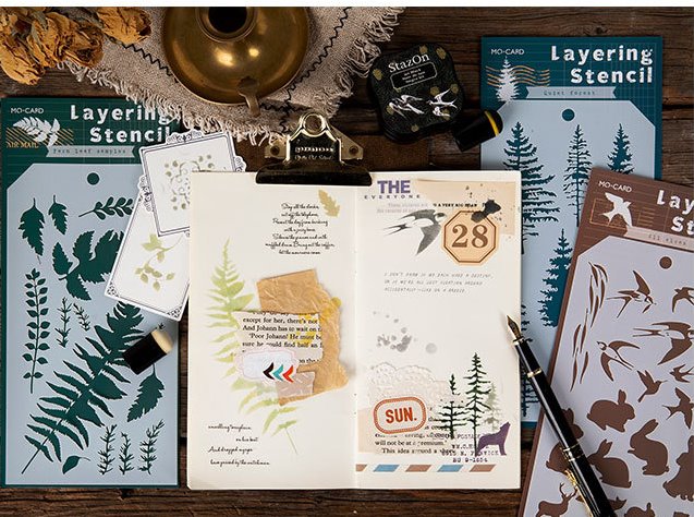 Một quyển Journalbook được trang trí handmade với stencil art.