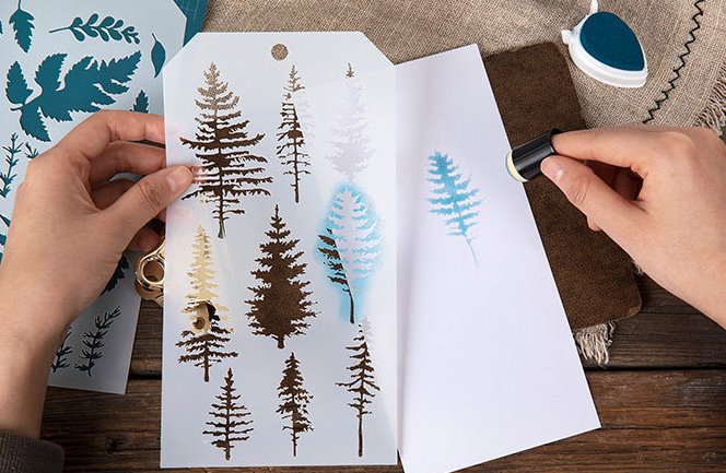 - Đặt stencil art lên giấy và tô với mực, sơn để tạo hình trang trí
