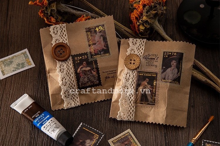 Một mẫu sticker quốc dân mà Craft & More muốn mang đến cho bạn - Sticker tem lớn nhũ vàng. Với phong cách cổ điển mang đậm nét nghệ thuật Phục Hưng và phong cảnh châu Âu, họa tiết tinh xảo được thiết kế sẽ là một điểm nhấn không thể thiếu trong những sản phẩm thủ công của bạn.