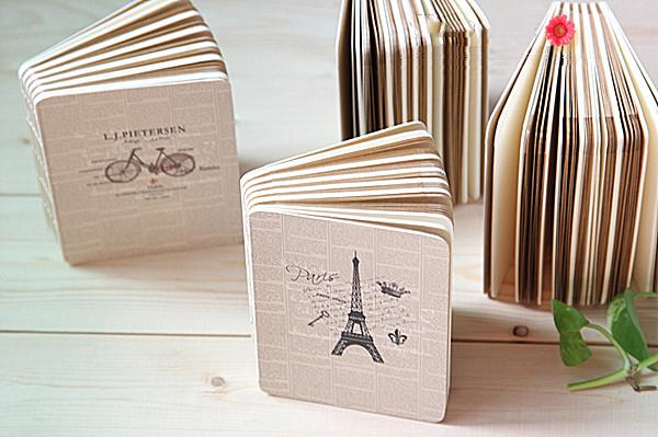 Thiết kế vát cạnh xinh xắn, màu sắc giấy lồng ghép hai màu trắng trơn - nâu nhạt cùng bìa sổ ghi chú phong cách Vintage đơn giản nhưng không kém phần xinh xắn.