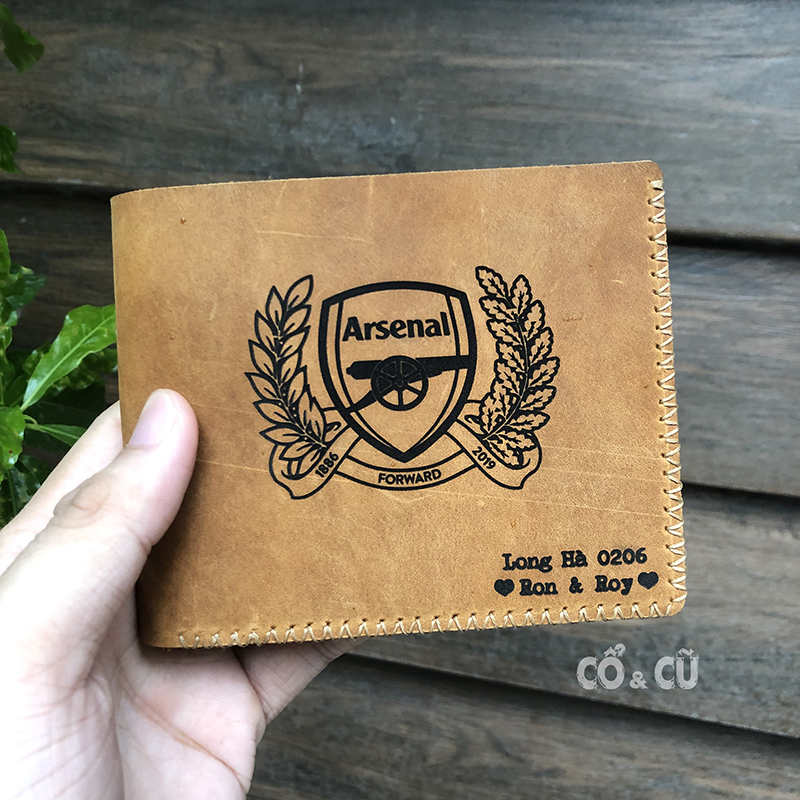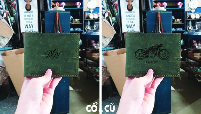 Ví da nam xanh rêu khắc hình và chữ theo yêu cầu