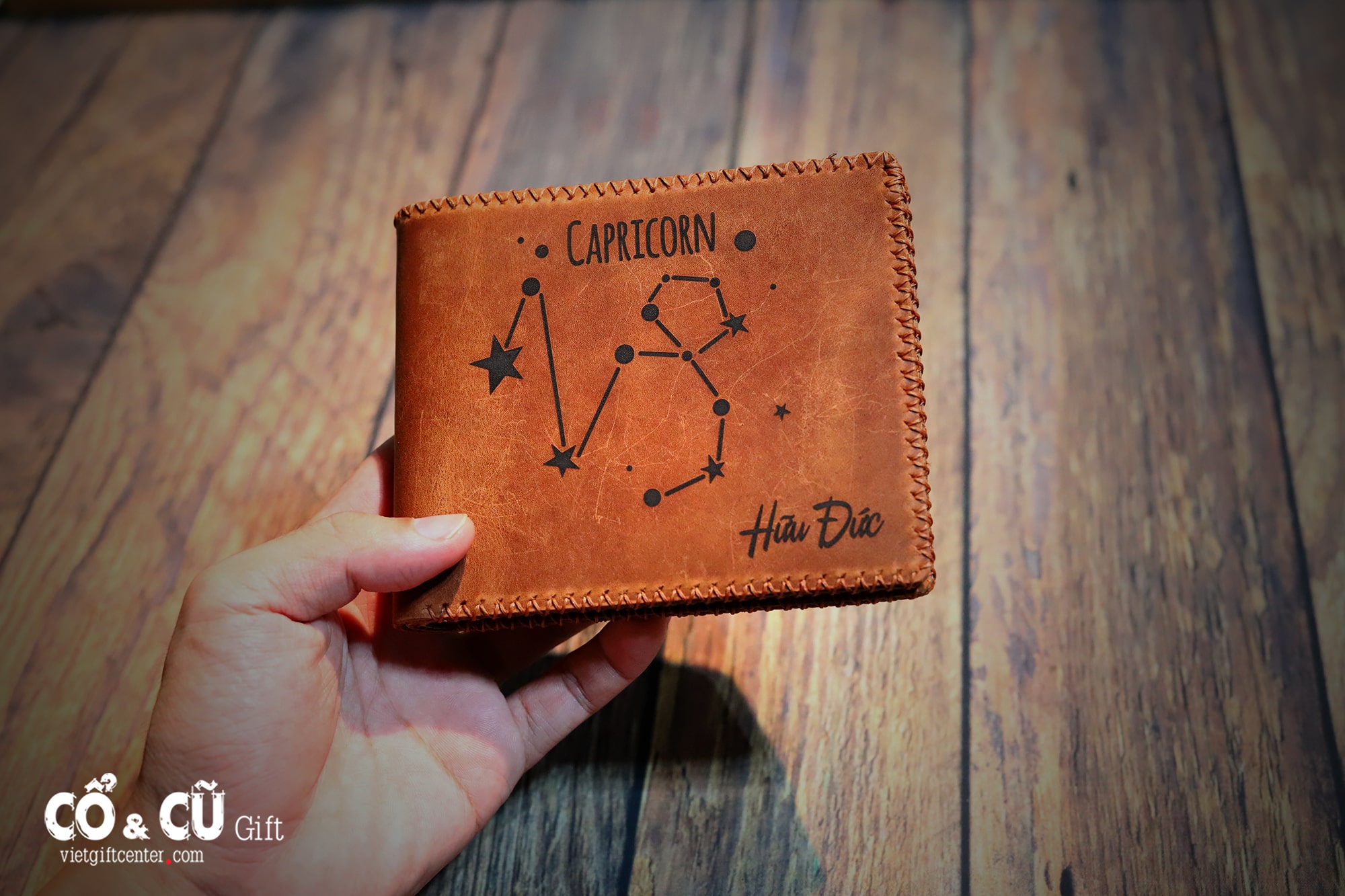 Ví da nam được khắc laser 12 chòm sao và tên của chủ nhân
