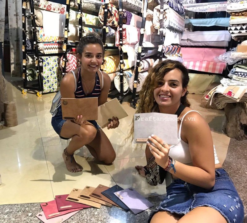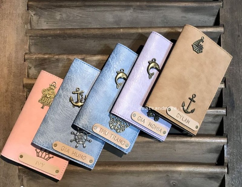 Hình ảnh thật Craft & More thực hiện đóng tag tên, gắn phù điêu trang trí vỏ hộ chiếu cho khách hàng: