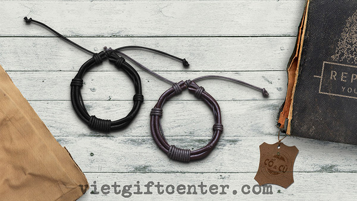 Thiên về gam màu trầm với thiết kế cá tính, bụi bặm, vòng tay da handmade 2 được rất nhiều bạn trẻ yêu thích và chọn lựa cho set đồ thời trang của mình.